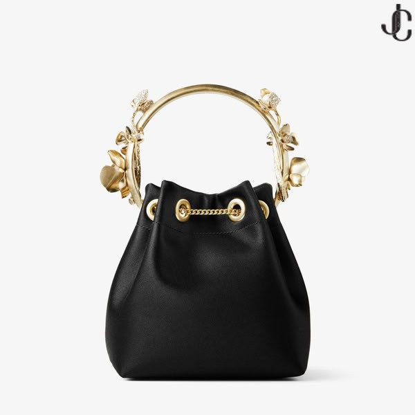 - Bon Bon Fekete Szatén Vödör Táska Fém Virágok
