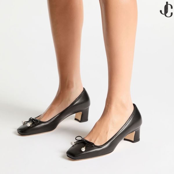 Az Elme egy klasszikus balerina sziluett emelkedett egy ultra-hordozható alacsony sarok. Kialakított Nappa bőr, őket egészíti ki egy gyöngy, pedig kristály-díszített íj.