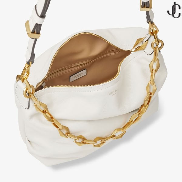- GYÉMÁNT PUHA HOBO/S Latte Puha Borjú Bőr Hobo Táska Lánc Heveder Tavaszi 2023 gyűjtemény