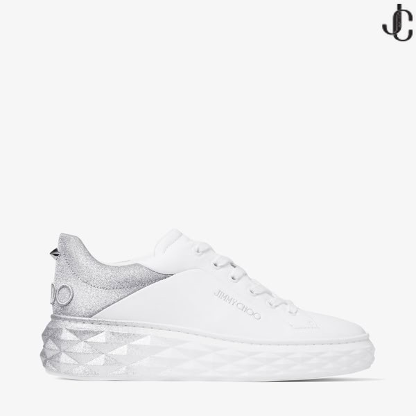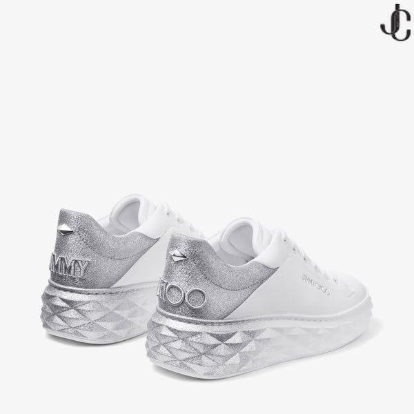 Diamante Maxi/F II Bianco & Argento Nappa in Pelle Glitter Trainers
