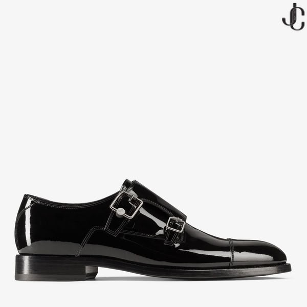 FINNION MONKSTRAP in vernice Nera Monk Strap Scarpe con Borchie dalla Collezione Estate