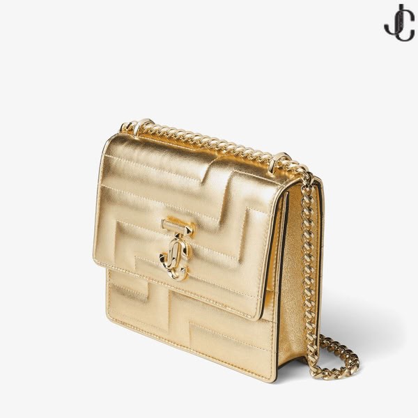 moderna e senza tempo, scelta, Viale Quad italiano, è predisposto in modo eclatante oro viale metallizzato pelle nappa. Inconfondibilmente Jimmy Choo, il nostro foldover caratteristiche di stile della firma in oro chiaro JC emblema e una leggera catena e cinturino in pelle. Indossare il nostro elegante e raffinato accessorio sulla spalla o cross-body.
