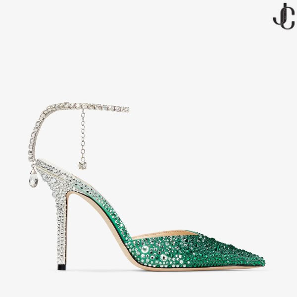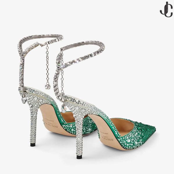 Saeda 100 Smeraldo Pompe di Raso con cristalli