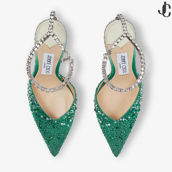 - Saeda 100 Smeraldo Pompe di Raso con cristalli
