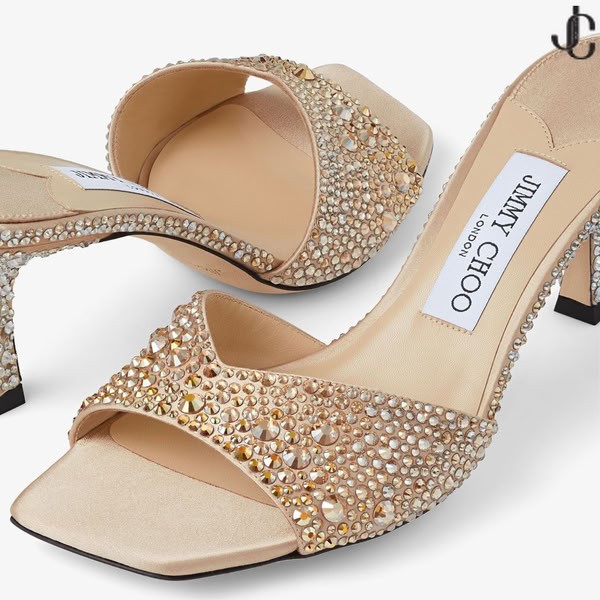- Skye 70Gold/Crystal Satin Crystal Sandals