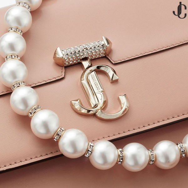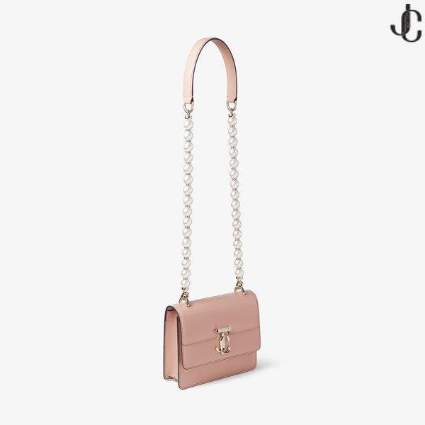 バレエのピンクのボックス革ショルダーバッグとパールストラップAVENUE QUAD XS夏2022集