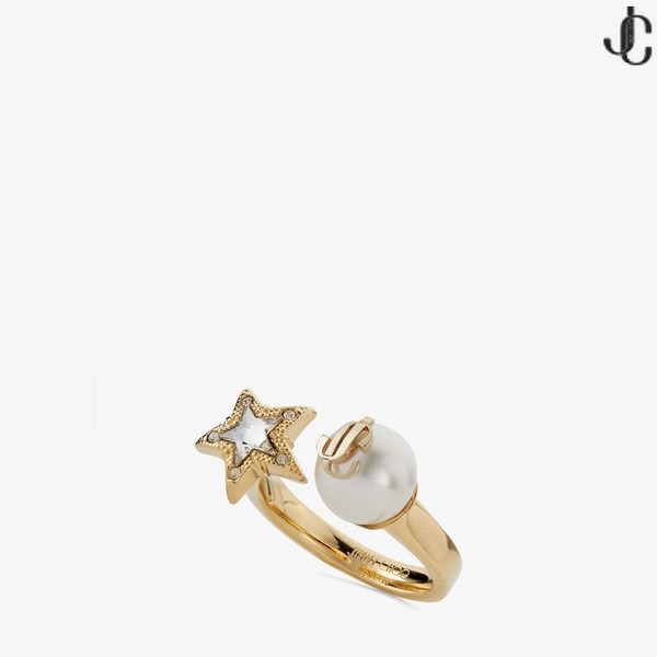 ゴールド仕上げの金属リングの結晶スターやパールジェーシー-パールスターリングジュエリーの収集