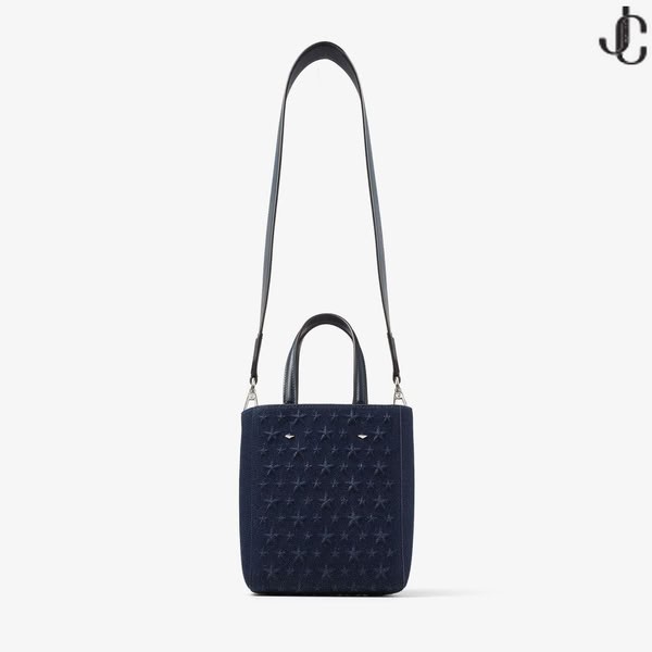 Lenny暗デニム/シルバーエンボスデニムトートバッグお