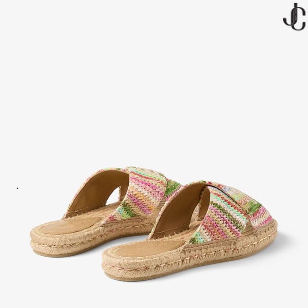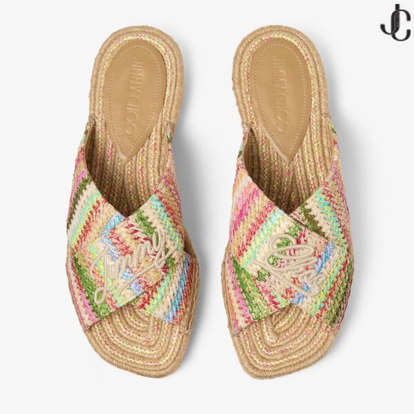 Gemaakt van raffia en aangevuld met handtekening Jimmy Choo geborduurd script, de Aciel sandaal reimagines de klassieke espadrille als een platte sandaal.