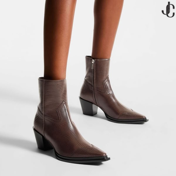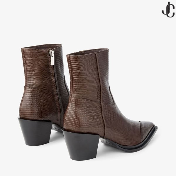 In hagedis gedrukt leer de Cece enkellaars reimagines en een tijdloze, paardensport geïnspireerd op het silhouet. Ze zijn ontworpen met een grafisch blok hak, spitse neus en een strak side zip.