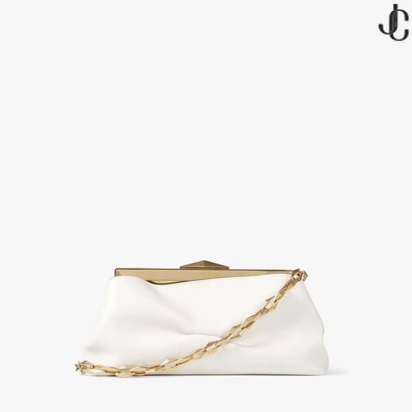 - DIAMOND FRAME KOPPELING Latte Zachte Kalf Lederen Clutch Tas met Ketting Schouderband Lente 2023 collectie