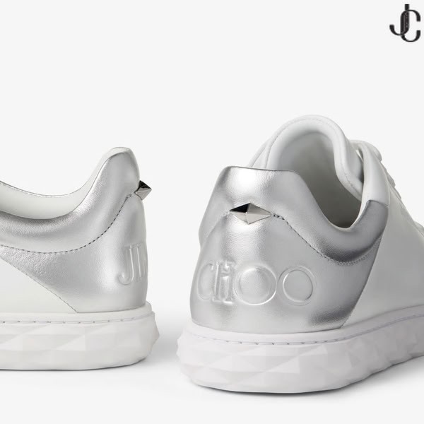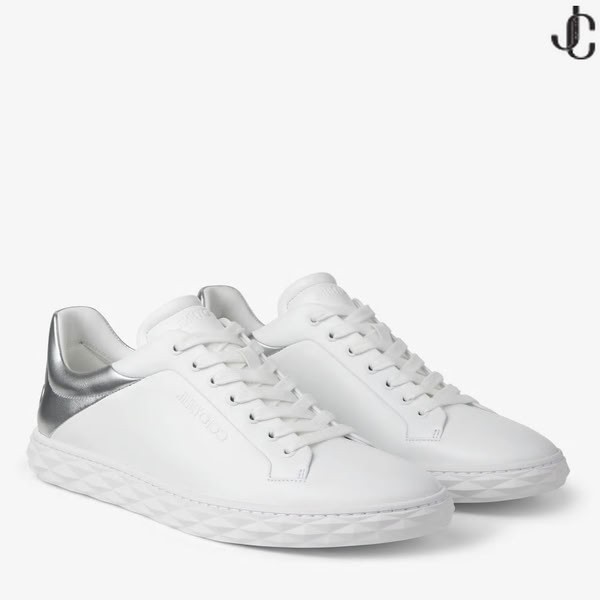 Diamond Light/M Ii Wit Leder-en - Zilver Metallic Nappa Lage-Top Trainers Nieuwe Collectie