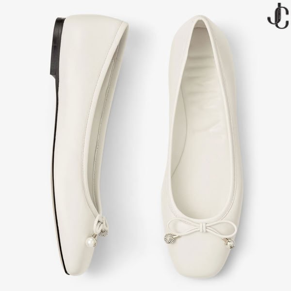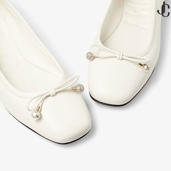 Kijken naar Elme in Nappa leder voor de klassieke stijl. Onze tijdloze ballerina flats zijn ideaal voor een ingetogen nog glamoureuze garderobe; aangevuld met een boog en een handtekening parels versierd met onze JC embleem.