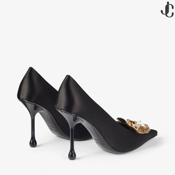 - IXIA 95 Zwart Satijnen Pumps met Bloemen Nieuwe Collectie