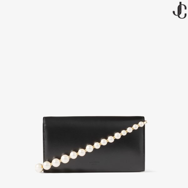 AVENUE LOMMEBOK/CHAIN Svart Skinn Lommebok med Pearl Stropp Sommer Kolleksjon