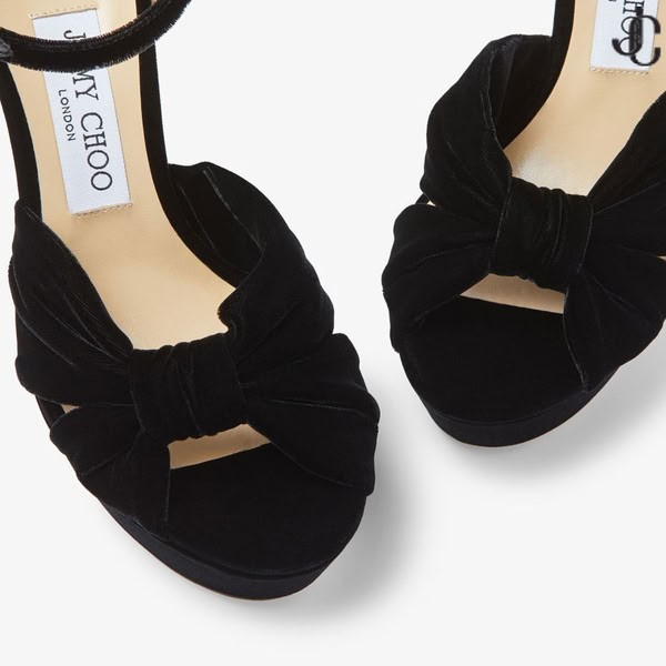 - HELOISE 120 Sort Fløyel Plattform Sandaler Vinteren 2022 samling