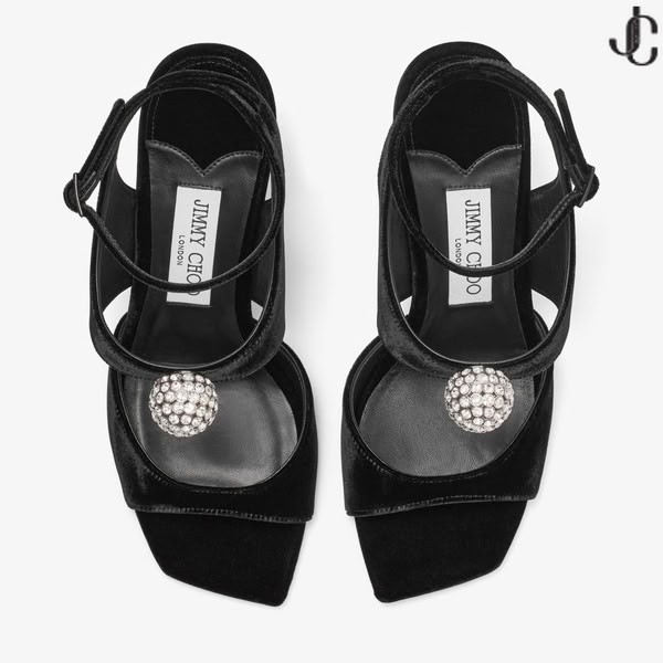 Designet med en uttalelse som krystall-pyntet orb, dette sandal er en skulpturell design med en firkant-cut vamp og en grafisk slippe hæl.
