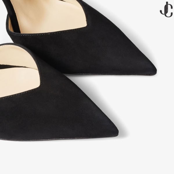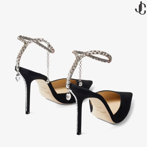 - Saeda 100 Black Suede Pumps with Crystal Embellishment