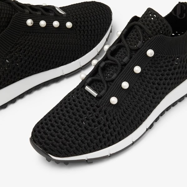- Czarne Trampki Veles z niskim dachem, związane szydełku, z perłami