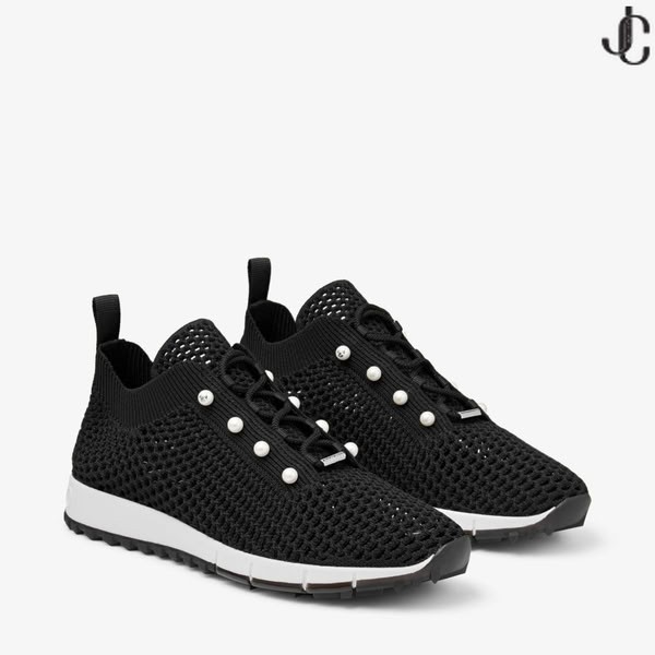 Czarne Trampki Veles z niskim dachem, związane szydełku, z perłami