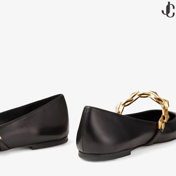 Jesienna Kolekcja Czarnych Балеток ze Skóry Nappa z Łańcuchem DIAMOND RICARDO FLAT