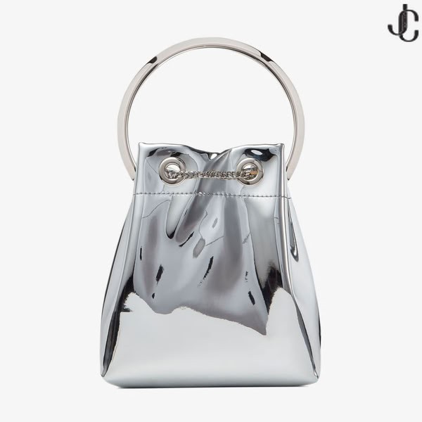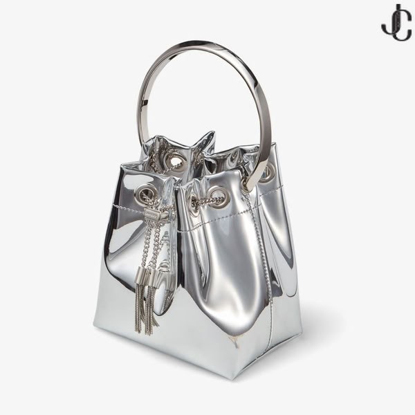- Mini-torba z Srebrnej, Lustrzanej Tkaniny BON BON z Metalowym Uchwytem