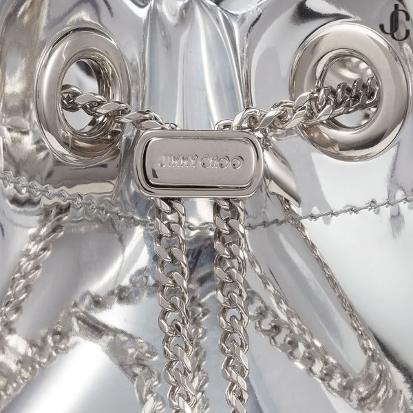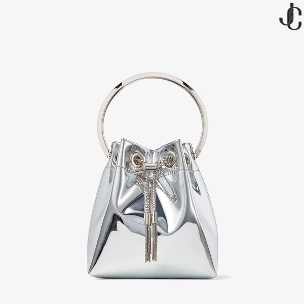 Kultowa torba BON BON, połyskującą i efektowna, wykonana z srebrzyste lustro tkaniny. Wykonane we Włoszech, nasz firmowy styl jest wyposażony w zapięcie na pasek-łańcuszek z frędzelkami i połączone z metalowym uchwytem-bransoletką z góry. Nosić w ręku lub przełóż na ramieniu za pomocą paska lub łańcucha.
