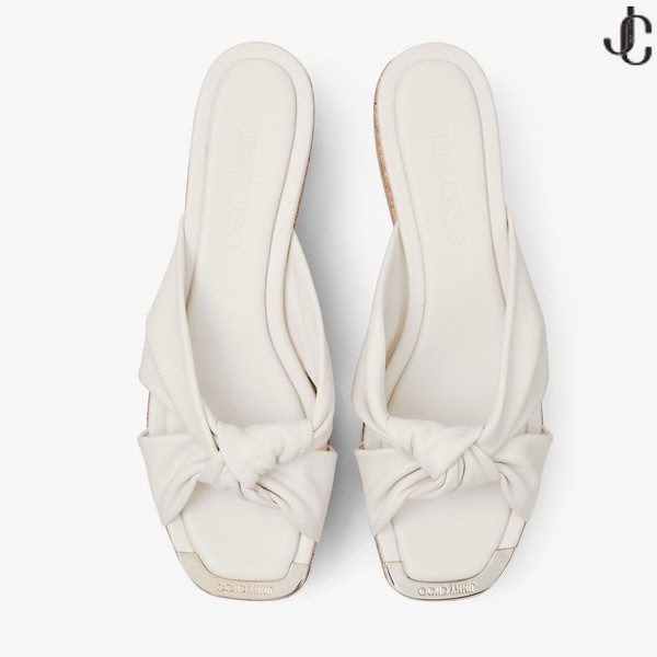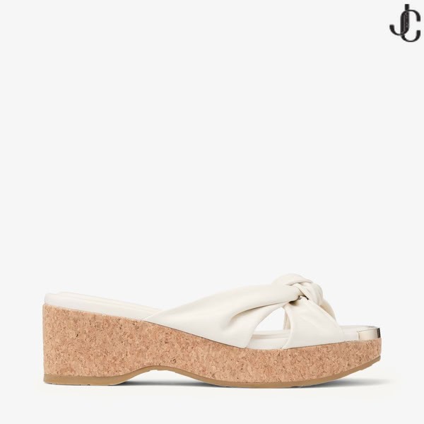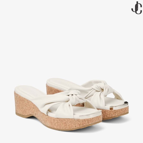 Niezwykle eleganckie buty Avenue ze skóry Nappa na koturnie z пробковым obcasem, idealne do garderoby na weekend lub wakacje. Model z paskami z falbanka i kwadratowym czubkiem.