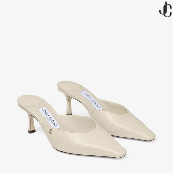 Model Vivi mule - to ponadczasowa sylwetka, wykonany ze skóry z nadrukiem jaszczurki. Model ze spiczastym czubkiem i współczesnej kwadratowy wkładką.