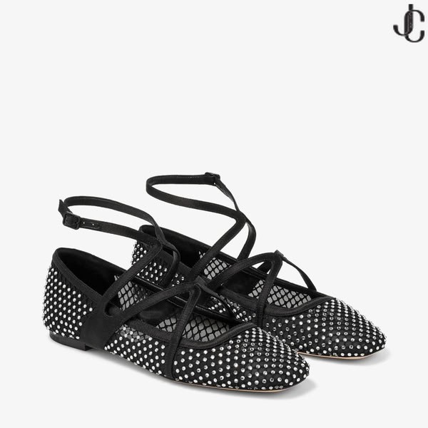 Astoria televisão é um intemporal estilo bailarina, trabalhada com um cetim e cristais-embelezado superior de malha. Esta praça-toe silhueta é complementado por lisonjeiro curva de tiras e uma pulseira de tornozelo ajustável.