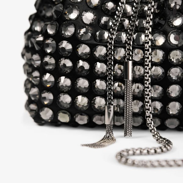 Inspirado por contrastes - duro, porém suave, doce ainda em negrito - o apropriadamente chamado Bon o Bon, em cristal-embellished de cetim é um irresistível, declaração da bolsa. Ele ganha seu status de ícone com um contemporânea balde silhueta que é coroado com uma pulseira de lidar. Este design versátil é complementado por uma cadeia de alça de ombro, ou seja, ele pode ser usado como um crossbody ou em mão.