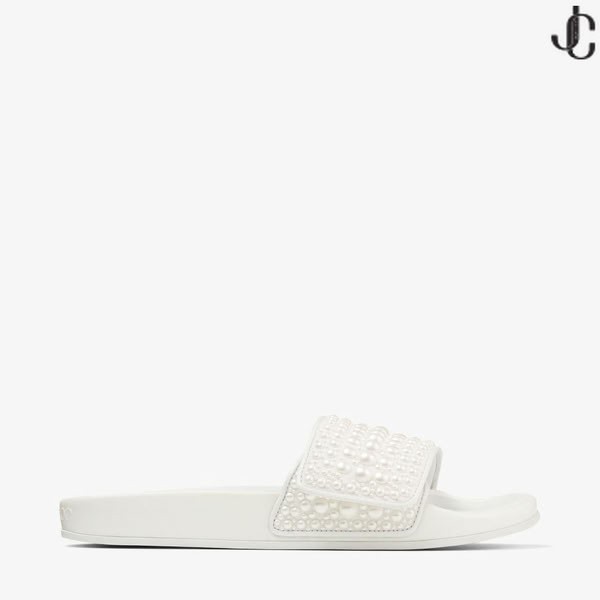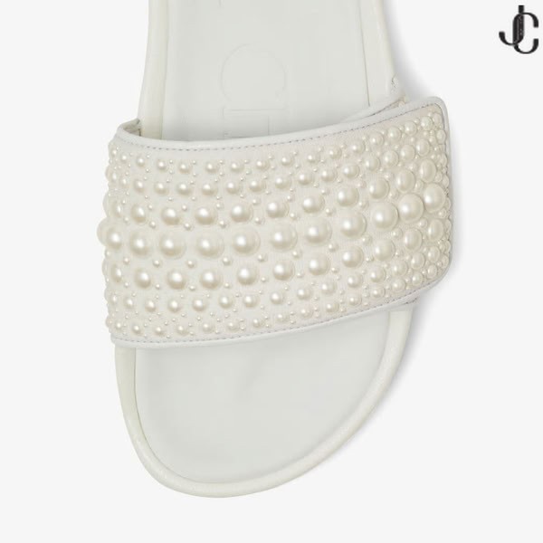 Branco de Lona e Couro Slides com Pérolas FITZ/F Alta de Verão 2021