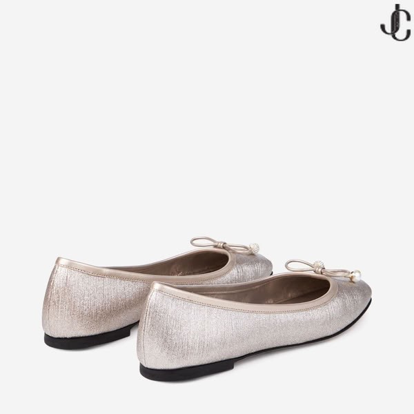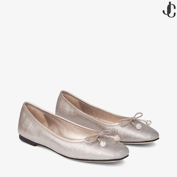 A Elme é um estilo clássico criado a partir de declaração do brilho do tecido. Este atemporal bailarina sapato é elegante sem esforço, complementada por uma pérola e cristal, adornados arco e a assinatura Jimmy Choo emblema.
