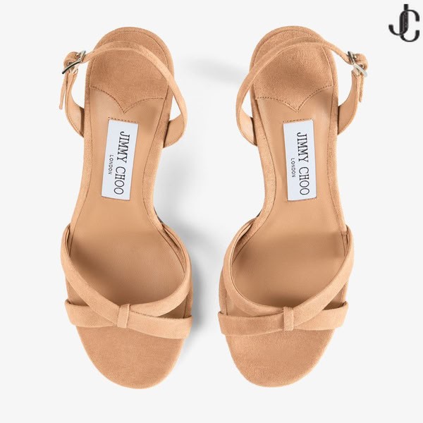 Esta excelência de tiras de sandália é uma lição de cinema moderno no minimalismo. Criado em camurça suave, elegante crossover frente e slingback alça de criar uma silhueta graciosa, terminou com uma escultura de calcanhar.
