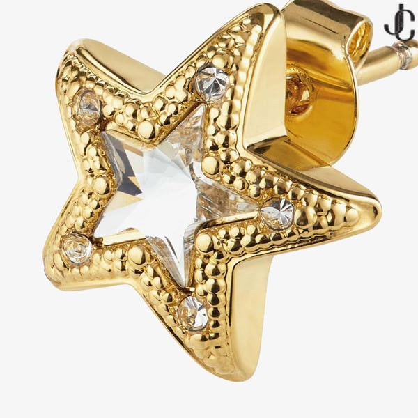 JC Estrelas Pregos combinam a elegância e a modernidade. Italiano-trabalhada em ouro-acabamento de metal, os brincos estão em forma para se assemelhar a assinatura Jimmy Choo estrelas e são decorados com cristais Swarovski, para um toque de glamour.