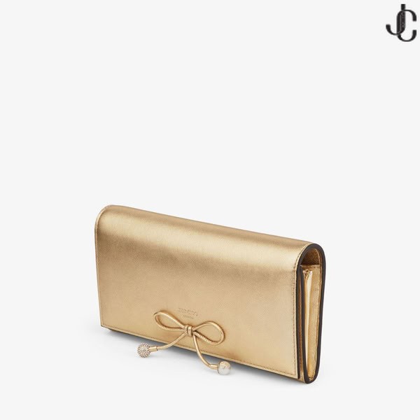 Martina portofelul este un stil clasic metalic fabricat din piele Nappa, completate de o perla si cristal arc. Acesta este conceput cu un snap butonul închidere și un compartiment interior zip.