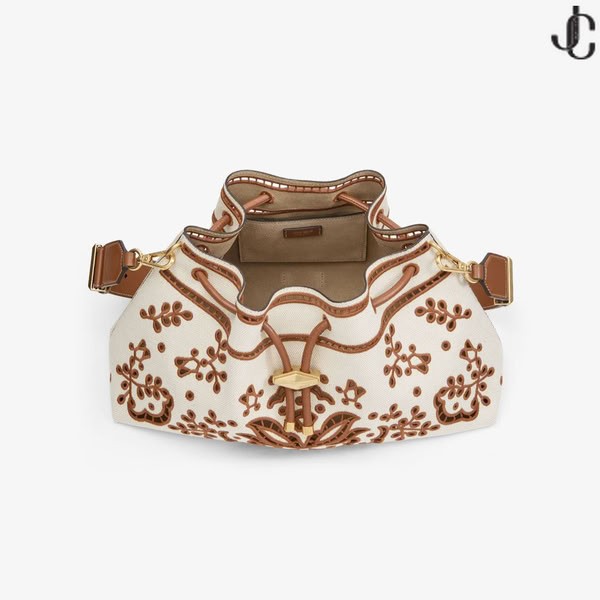 Inspirate de contraste – Rca geanta este definit de un efort silueta asigurat cu un cordon de închidere și semnătura diamant incuietoare. Acest sezon este realizat cu complicate Sangallo broderie - o trăsătură definitorie de Vara 2025 colecție - care joacă în contrast panza si piele accente.