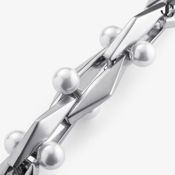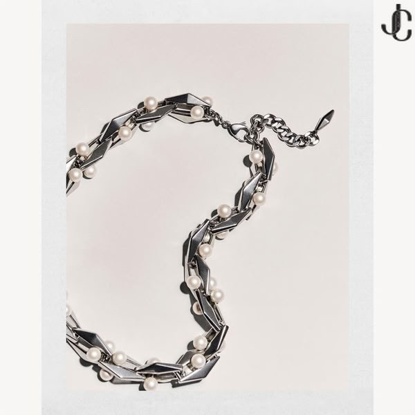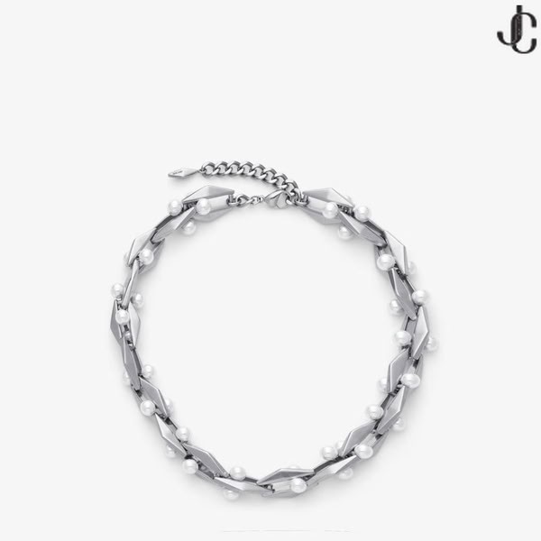 Diamond reťazca náhrdelník je vytvorený z starožitné strieborné prevedenie kov, ozdobené s perlou. Tento štýl je doplnený o Diamantové reťaze náramok a Diamantové náušnice.