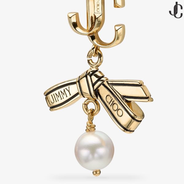 En lekfull blinkning till huset koder, dessa guld-ton örhängen har skulpturala metal band charms graverad med jimmy choo logotyp. Tillfälligt nedan, en lysande pärla släpp är klar med en miniatyr JC emblem – föra mjuk glans och signatur beskriver att varje tur. En elegant uttalande med en antydan av charm.