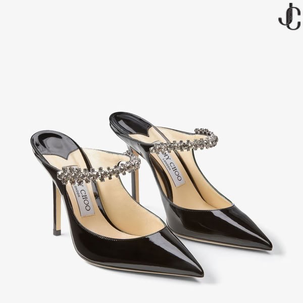 Bing 100 Svart Patent Läder Mulor med Crystal Rem