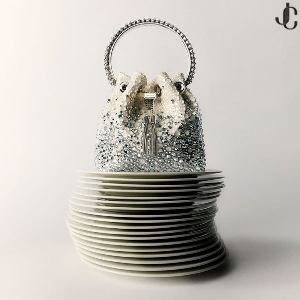 - Bon Bon Ivory Satin Kristall Väska