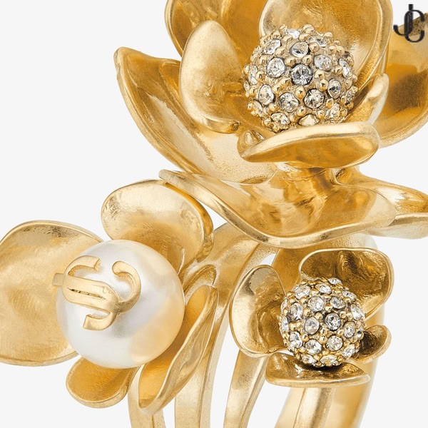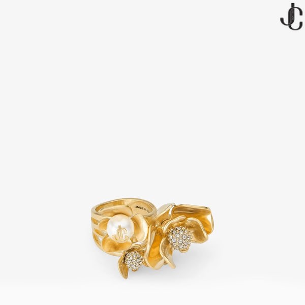Kronblad ringen är elegant i sin enkelhet, tillverkade i guld-finish i metall, prydd med kristaller och pärlor. Par med off-duty ensembler till tillbehör enkelt chic ensembler eller komplettera din efter-mörk kapsel.