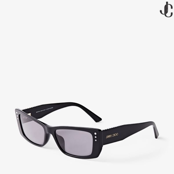 Lexy Svarta Rektangulära Solglasögon med Kristaller