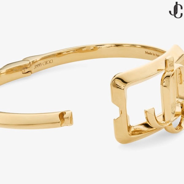 JC Square Cuff är en elegant armband accentuerat med vår signatur monogram. Den eleganta pjäs är skapad från guld-finish i metall.