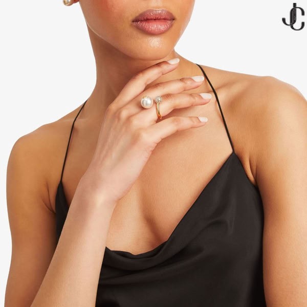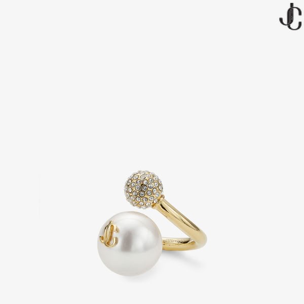 Auri yüzük, inci ve kristal süslemeli altın kaplama metalden zarif bir parçadır. Zamansız bir görünüm için Auri küpelerimizle mükemmel bir uyum sağlıyorlar.