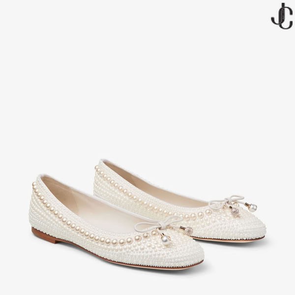Elme, inci süslemeli satende klasik bir stile zamansız bir çekicilik getiriyor. Bu balerin ayakkabısı, inci ve kristal süslemeli bir fiyonkla tamamlanan zahmetsizce zariftir.