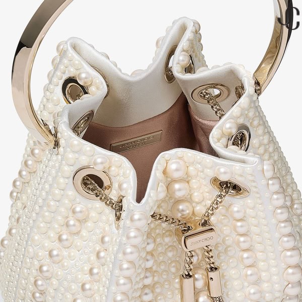 Her Tarafı incili Bon Bon Fildişi Saten Çanta